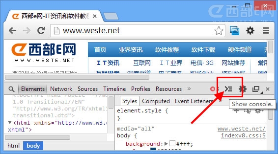 2、打開“開發者工具”,快捷鍵(F12或者Ctrl+Shift+i)。